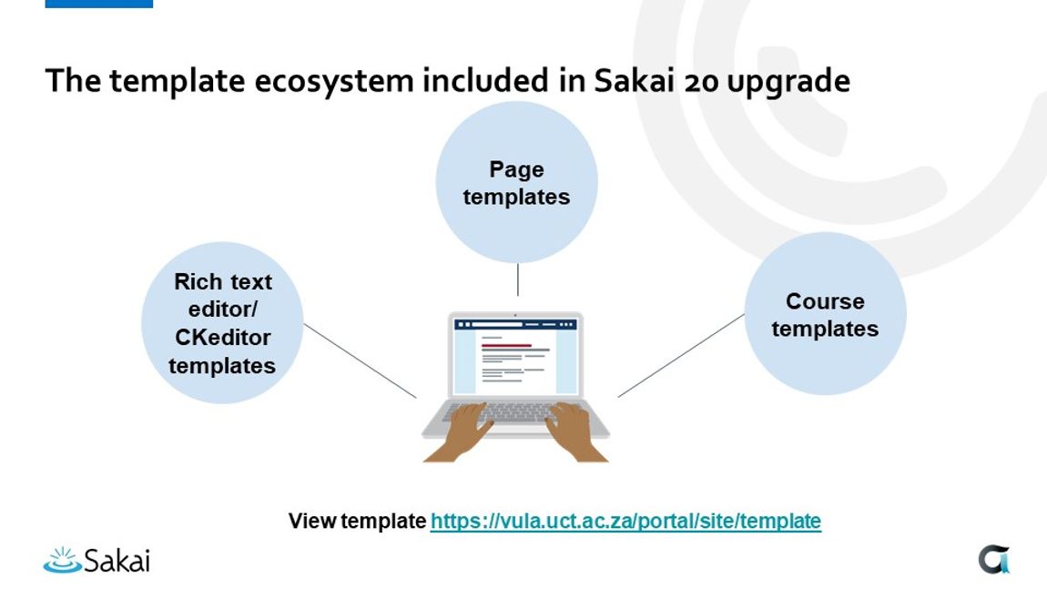 I worked with a developer in the team to code a selection of templates into our rich text editor. Once I had deployed the templates, my team prepared and hosted webinars on how to use the templates before the start of the semester. The project proved successful, with a significant uptake of lesson design from lecturers. I presented the template ecosystem for our university at the Online Sakai conference in 2020. The template ecosystem provided multiple options for template usage, with the rich text editor method being the most popular.